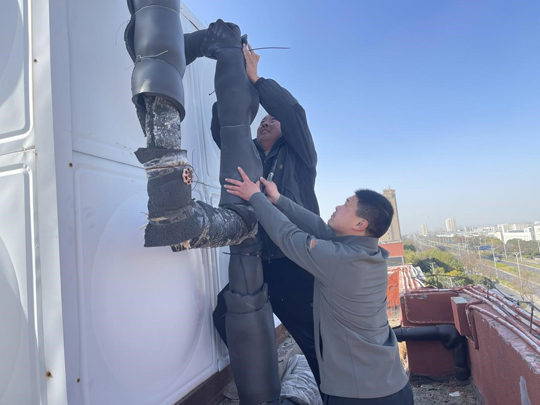 與此同時,常年佇立的戶外設(shè)施也紛紛披上量身定制的“保溫外衣”。工作人員采用專用保溫材料,對這些設(shè)施進(jìn)行嚴(yán)密封裹與加固,確保在嚴(yán)寒天氣中仍能正常運行,有效防范因凍脹、凍裂引發(fā)的供水中斷或消防安全隱患。