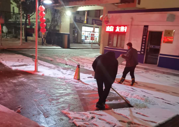 在園區(qū)公舍防疫值守的李佃左說道:“雖說疫情來了,但大家伙的心是牢牢團結在一起的,這不一看下雪了,擔心復工人員上班時的出行安危,大家伙都忙活起來啦!”當晚,建發(fā)公司員工、園區(qū)環(huán)衛(wèi)人員“相約”在轄區(qū)內及園區(qū)道路街頭,在嚴寒中默默堅守,與冰雪爭分奪秒,你鏟我掃、撒布融雪劑,井然有序,從容不亂,大家齊心協(xié)力、配合默契,為保障轄區(qū)內通暢竭盡全力。在掃雪除冰的同時,園區(qū)公舍集宿區(qū)工作人員仍然堅守在執(zhí)勤點執(zhí)勤防控,有序做好各項疫情防控工作。