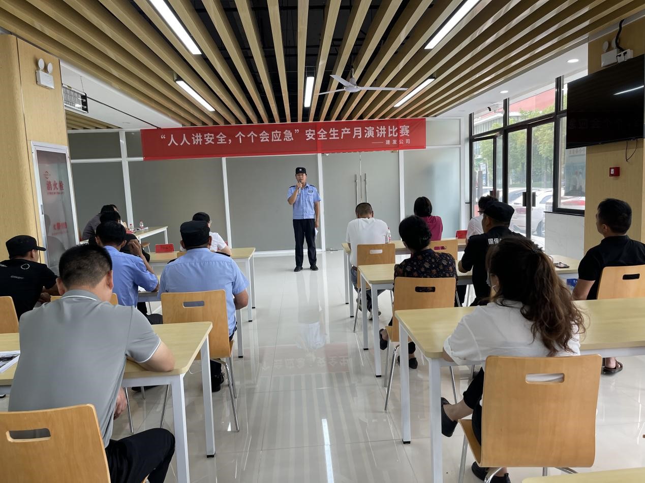 今年6月是第22個全國“安全生產(chǎn)月”,為進一步推動安全文化建設,提高廣大員工安全意識,營造安全和諧的生產(chǎn)環(huán)境和安全文化氛圍,6月16日,建發(fā)公司組織安保單位開展了“人人講安全,個個會應急”主題演講比賽。
