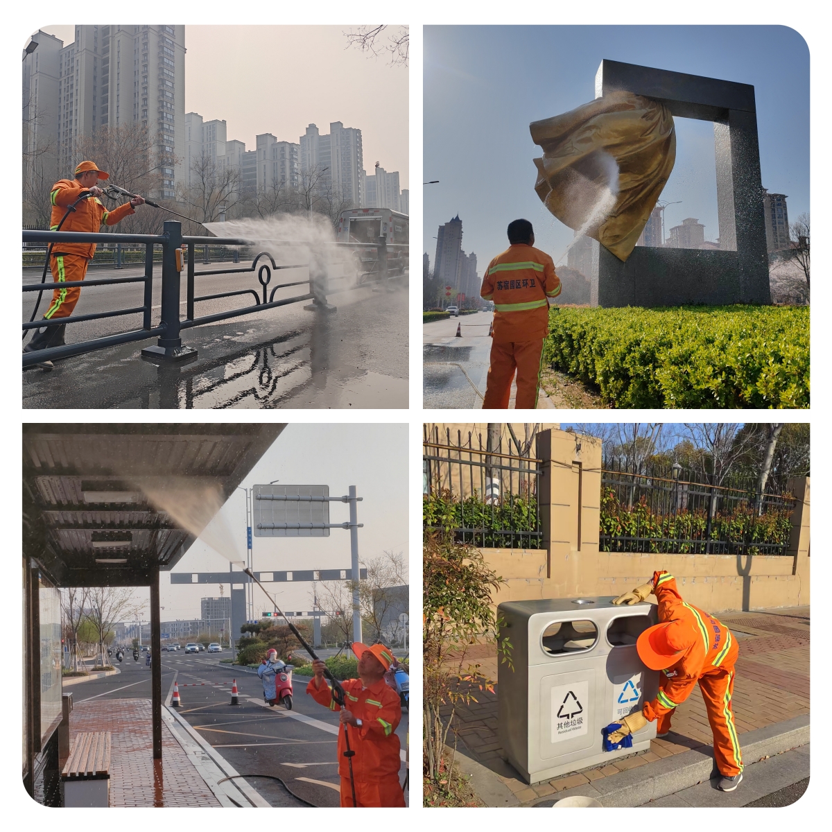 “立面”清洗,“洗”出“高顏值”。采用“擦、洗”相結合,對公交站臺、交通護欄、果殼箱、雕塑小品等城市家具進行了深度清潔,在日常擦拭的基礎上,集中開展了一次設施“立面”大清洗,洗去冬日積塵,重現(xiàn)靚麗本色。