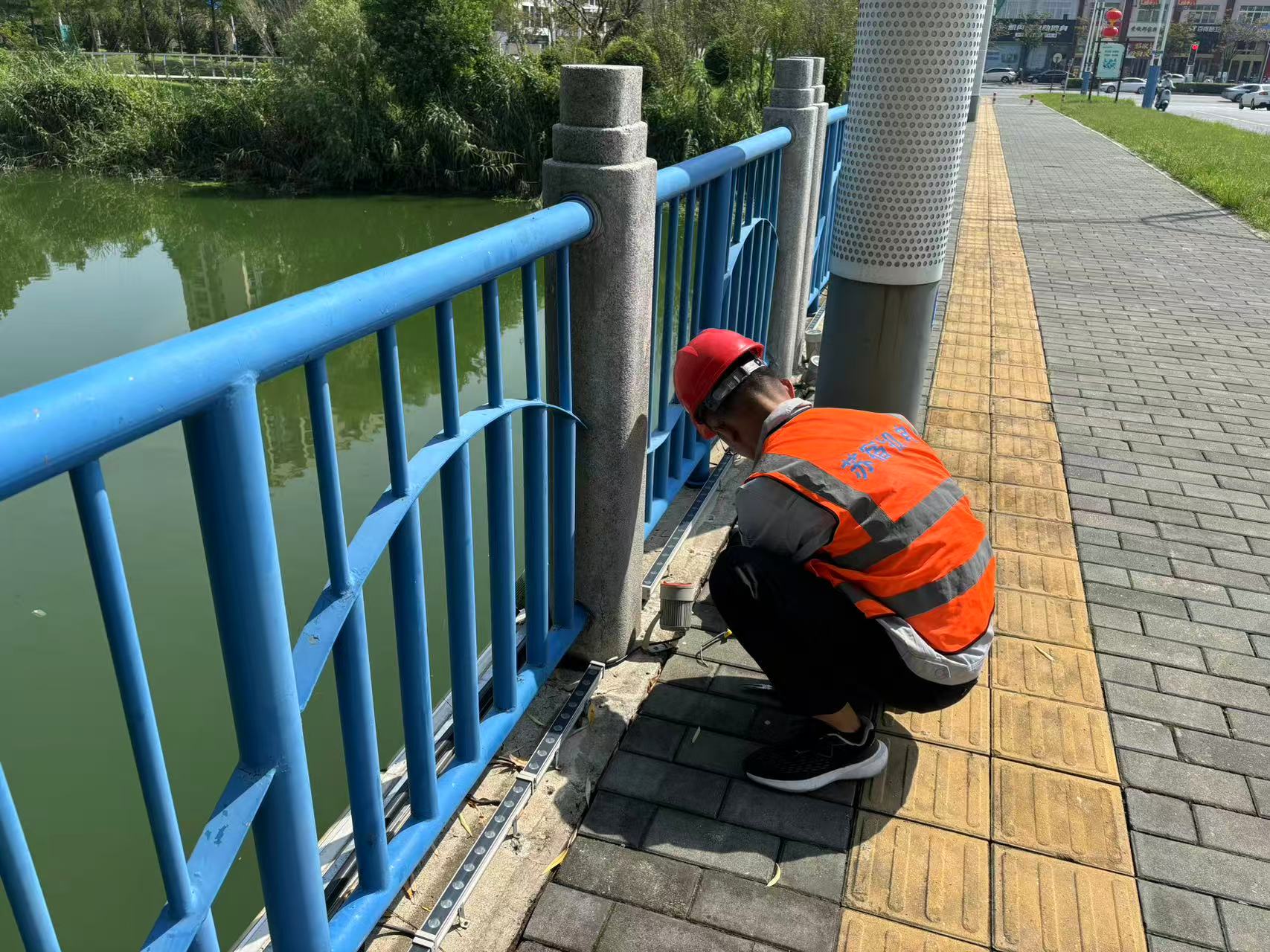維修沿河亮化,勾勒夏夜畫卷