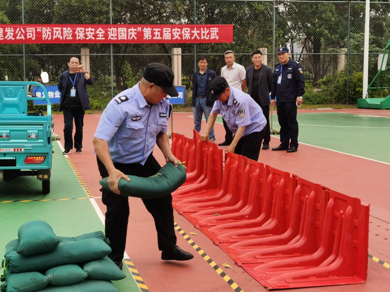 為進(jìn)一步提升公司安保人員業(yè)務(wù)素質(zhì)和服務(wù)水平,展現(xiàn)安保隊(duì)伍良好形象,提高團(tuán)隊(duì)凝聚力和戰(zhàn)斗力,9月23日上午,建發(fā)公司在園區(qū)公舍舉辦第五屆“防風(fēng)險(xiǎn) 保安全 迎國(guó)慶”安保大比武活動(dòng)。城發(fā)公司董事長(zhǎng)、建發(fā)公司執(zhí)行董事陳非出席本次活動(dòng)。