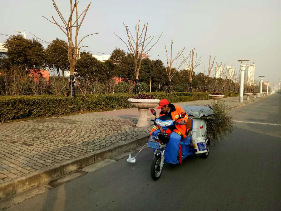 一是機(jī)械設(shè)備不斷增加,目前園區(qū)在道路保潔方面共有洗掃車4輛,濕式掃路車2輛,灑水車4輛(其中高壓沖洗車1輛、抑塵車1輛),電動掃路車1輛,全面提升了園區(qū)環(huán)衛(wèi)保潔機(jī)械化作業(yè)率;二是充分考慮大型洗掃和沖洗車輛作業(yè)盲區(qū)的不足,降低道路保潔作業(yè)對交通的影響和對作業(yè)面依賴程度,園區(qū)還針對性了引進(jìn)了小型高壓沖洗車輛5臺,全面提升了園區(qū)環(huán)衛(wèi)作業(yè)盲區(qū)的保潔水平和效率;三是為每名道路保潔員配置一輛密閉式電動保潔車,加強(qiáng)對路面漂浮垃圾的撿拾和突發(fā)事件的處理,確保作業(yè)時間內(nèi)落地垃圾和污染物停留時間不超過10分鐘,有效提升了園區(qū)動態(tài)化保潔水平。