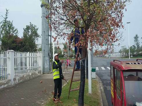 為提高園區(qū)2015年受凍香樟成活率,近期,公司組織養(yǎng)護(hù)單位對園區(qū)香樟進(jìn)行一系列的復(fù)壯措施。